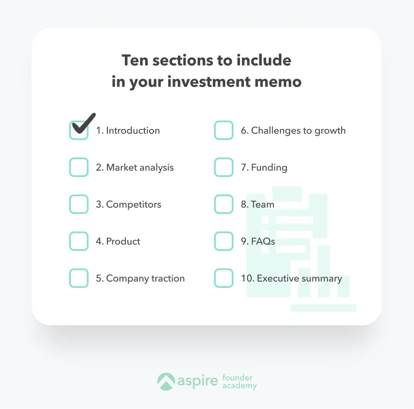 - Achievements: Did you launch an essential product or surpass a certain amount of traction? Make it clear in your investment memo.