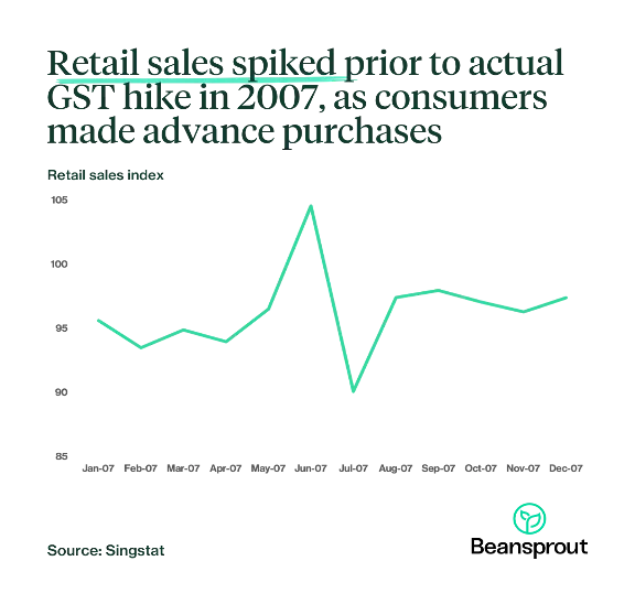 While the most obvious effect would be lower consumer spend at the beginning of 2023 as consumers would become more cost-conscious about big purchases, it is highly likely that consumers would move their big purchases forward to the final month of 2022, to capitalise on the lower GST before the hike is implemented. This was the case for much of retail sales in 2007 prior to the last launch, and was even more apparent in luxury services, where a single percentage increase in tax could turn out to be hundreds of dollars.