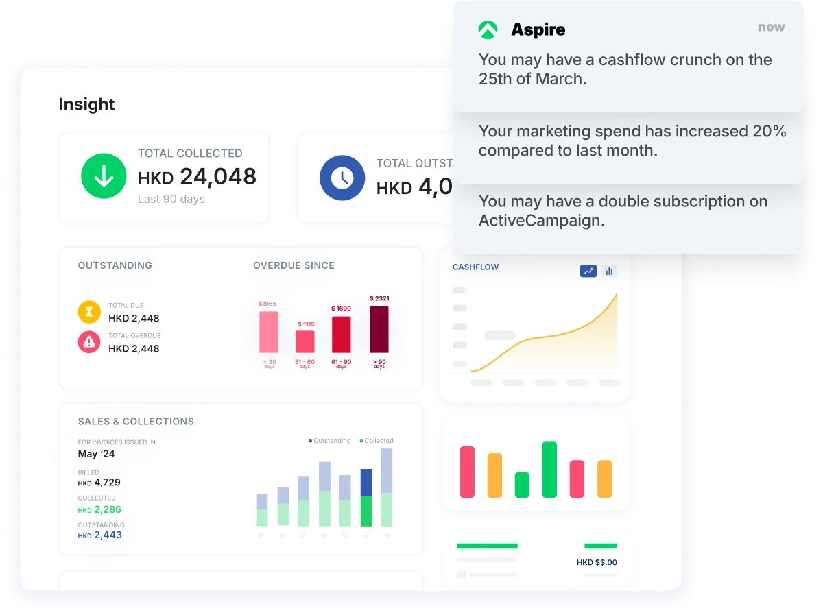 Get a future view of cashflow, spot upcoming trends, and receive smart insight notifications