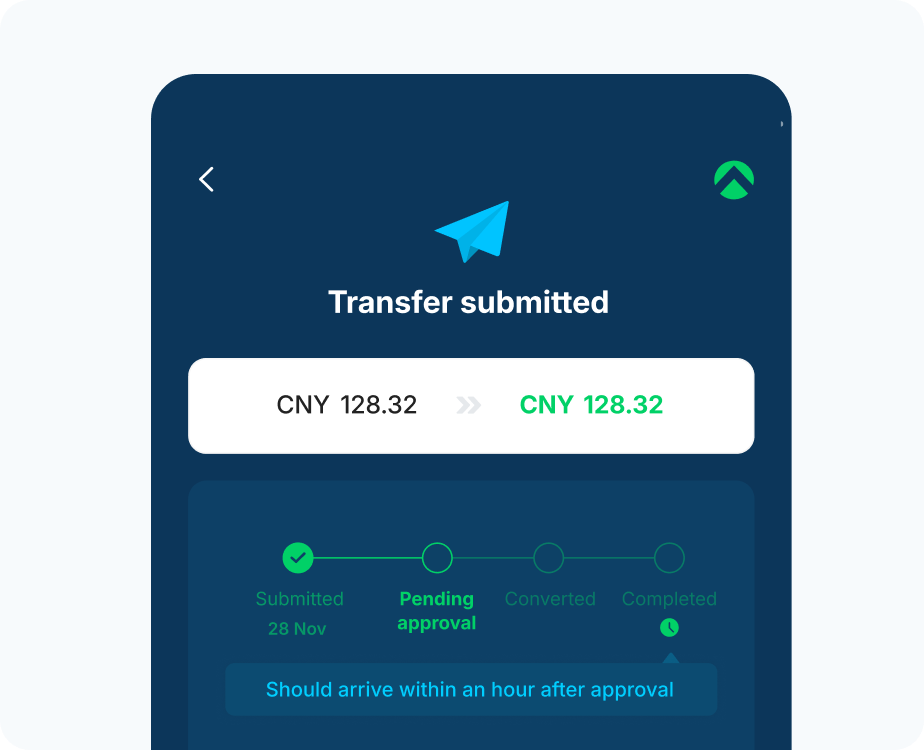 You can send directly from your Aspire CNY account. If you hold funds in your Aspire USD, EUR, GBP, or HKD accounts, you can exchange them instantly to your CNY account and make the local payout.