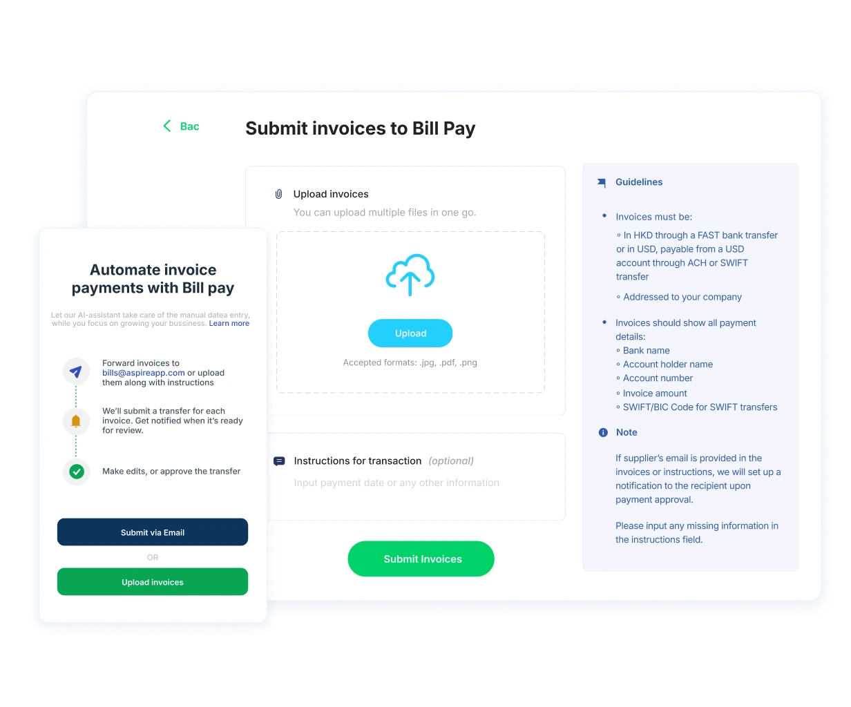 對於資源有限的中小企團隊而言,Aspire 更像是一位自動化助手,將發票管理、員工出糧及會計對賬整合在單一平台,讓您無需增加人手也能實現精準的財務內部控制,將更多精力投入於業務增長。