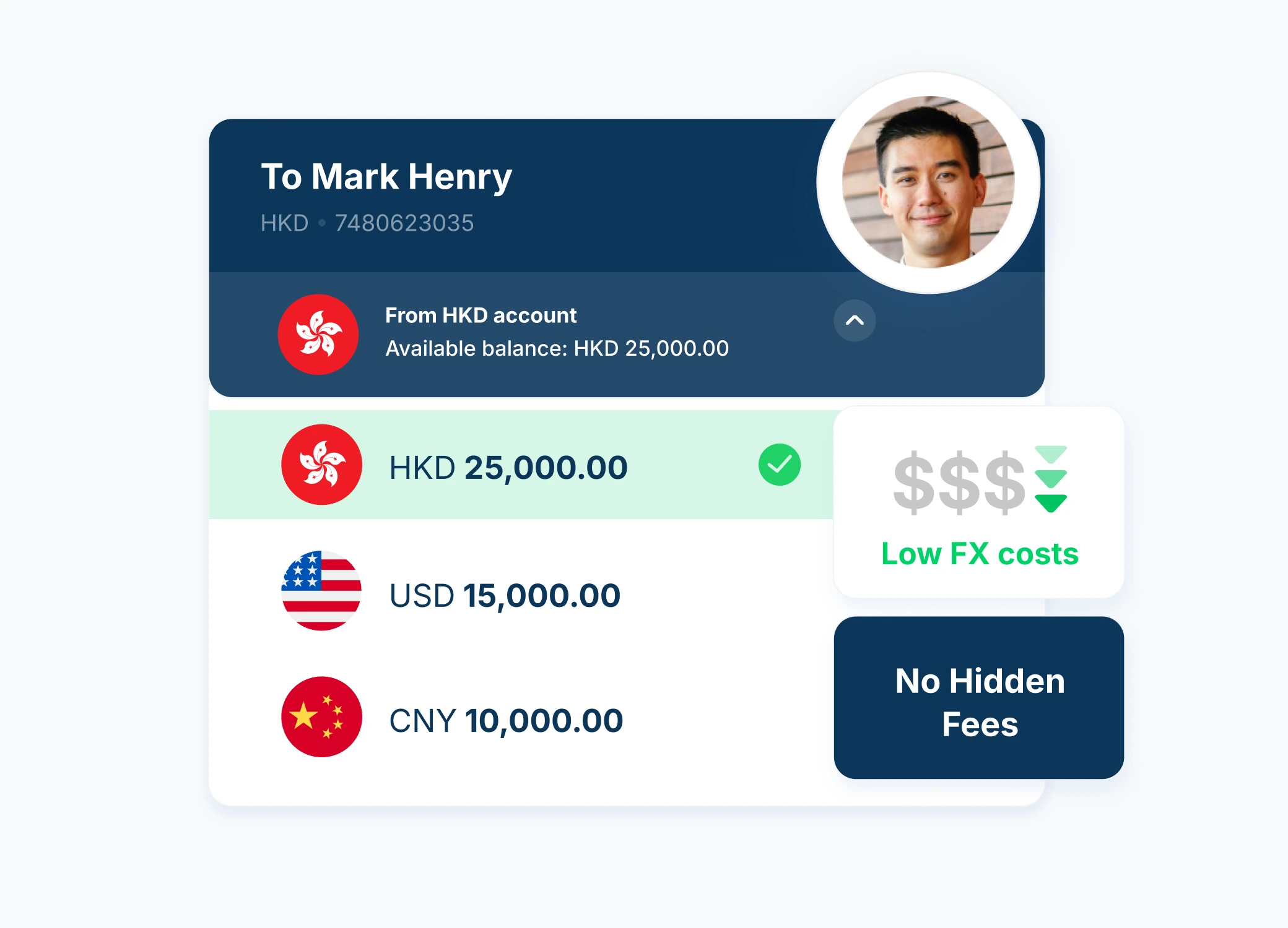 Aspire 提供領先市場的透明匯率,僅由市場匯率 + 0.18% 起。相比之下,HSBC 的匯率溢價較高,且往往包含隱藏手續費,在不知不覺中攤薄您的業務利潤。