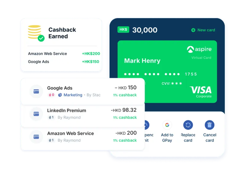 不同於不支援香港公司卡的 Wise,Aspire 提供虛擬公司卡,並針對大部分營運及商業開支提供 1.2% 無上限現金回贈,直接將開支轉化為利潤。