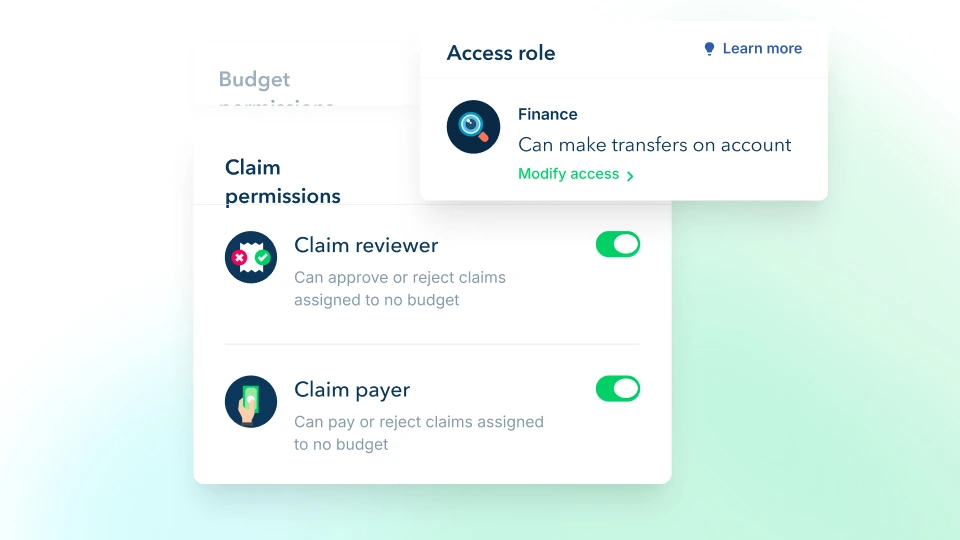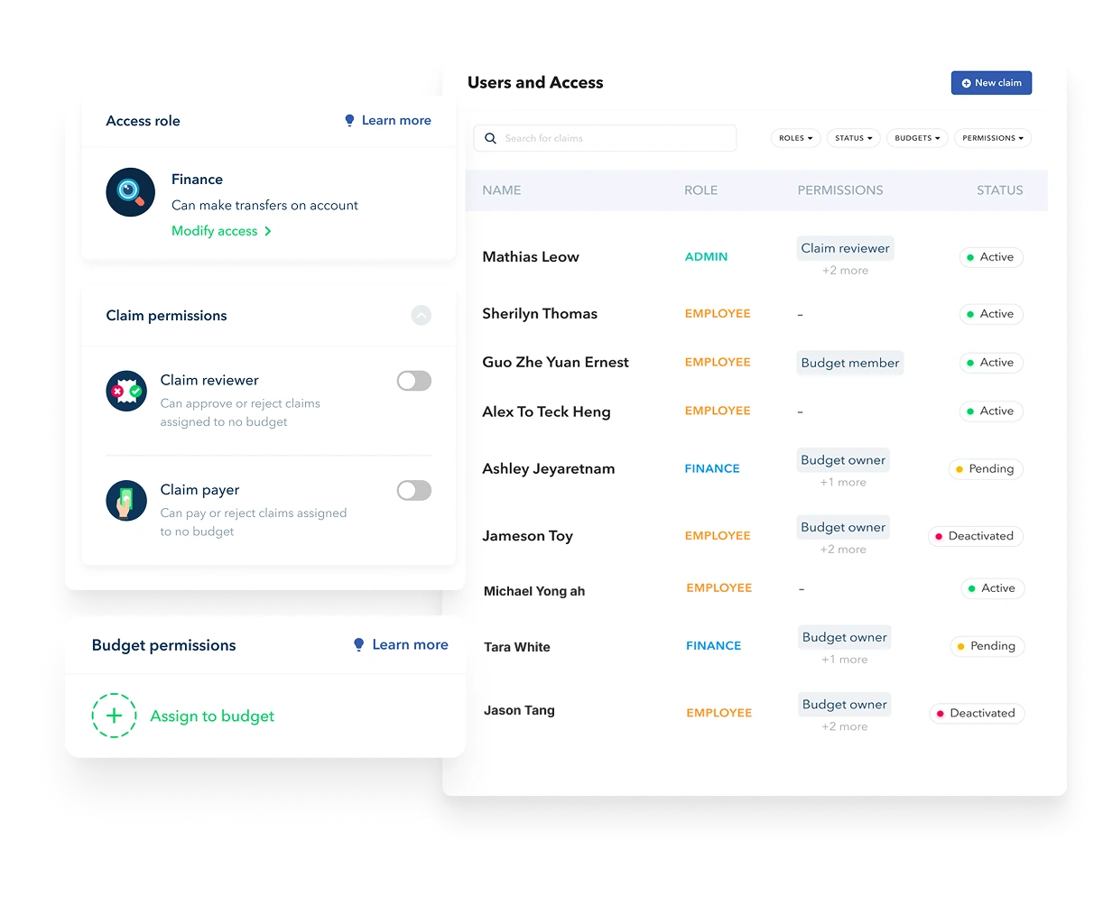 可選擇管理、財務或員工角色。只需點擊幾下即可隨時新增或刪除用戶