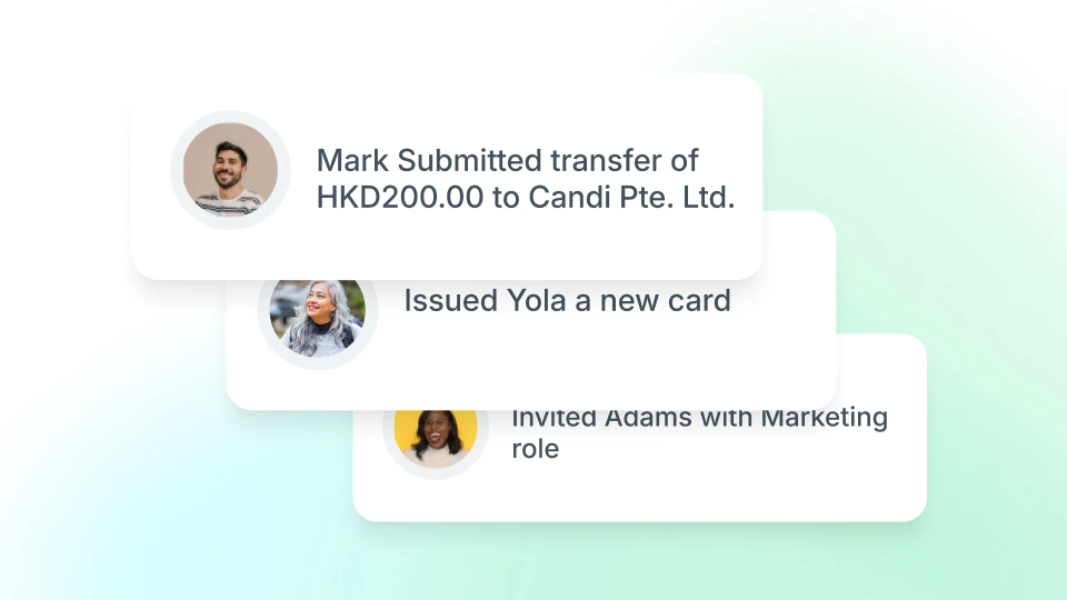 獲取團隊成員賬戶活動的實時洞察和通知。隨時了解付款的時間和對象