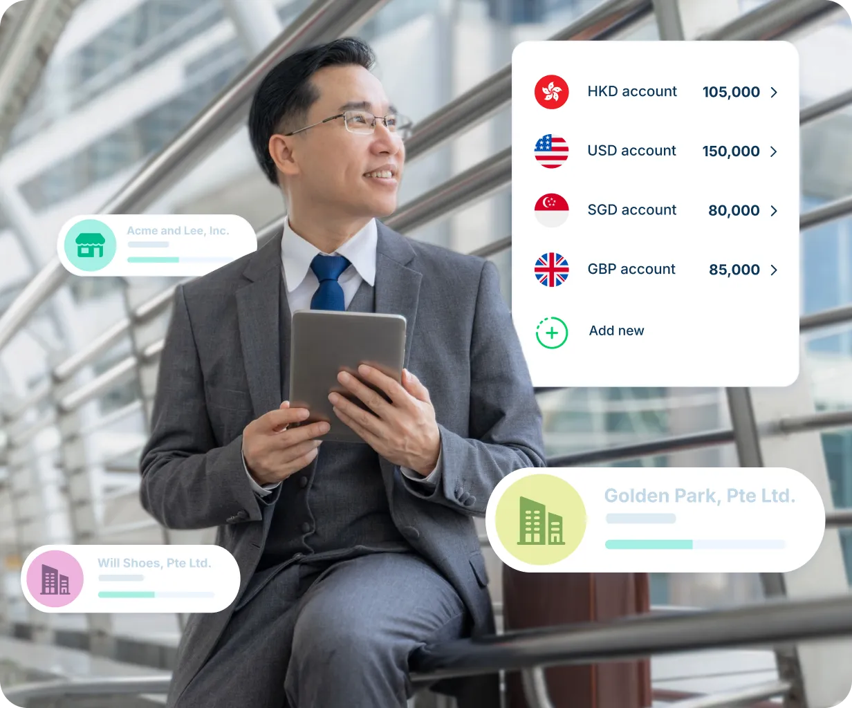 專為創投基金公司而設的100%網上開戶服務。數小時內即可使用你的多貨幣賬戶