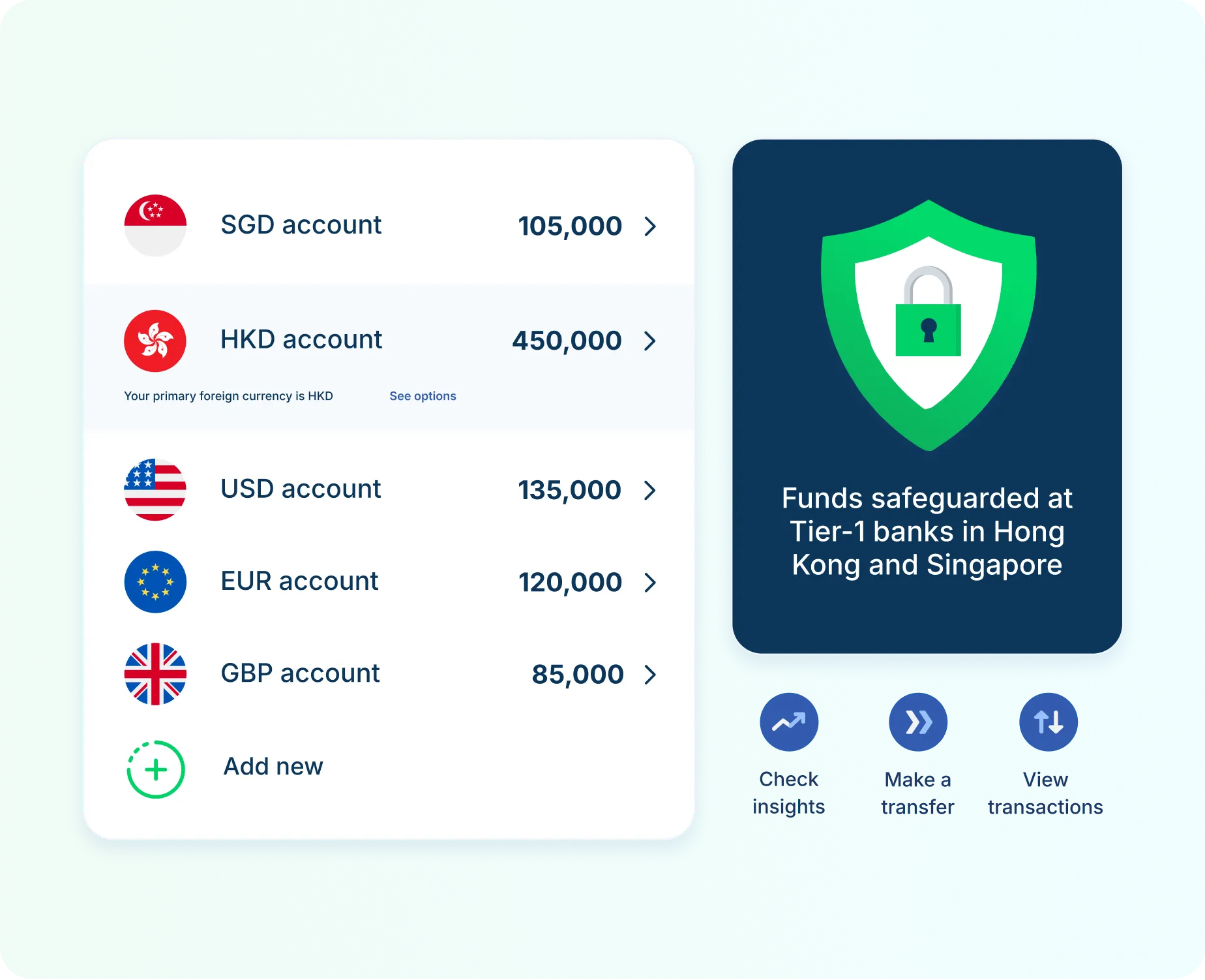 获取您自己的本地和国际账户号码,接收多种货币的款项,像银行一样。